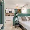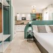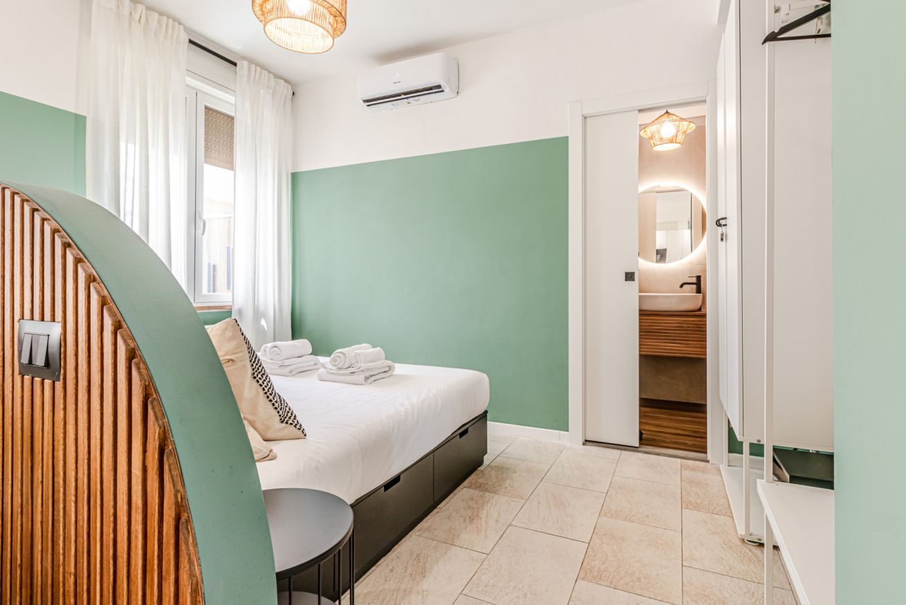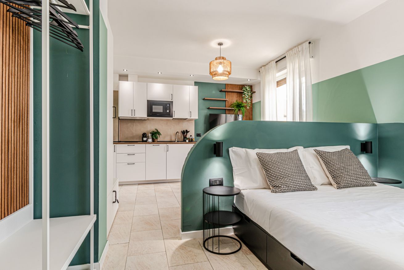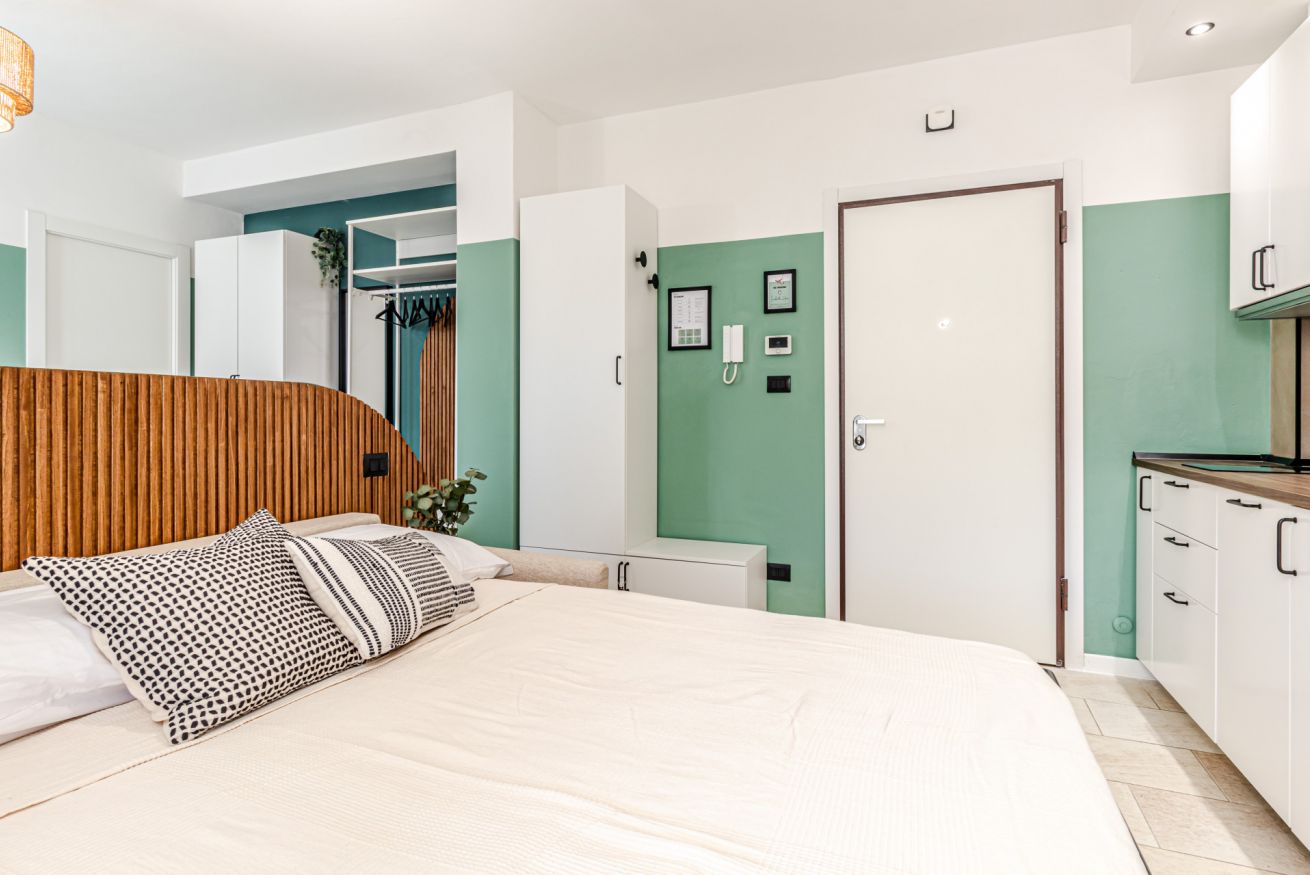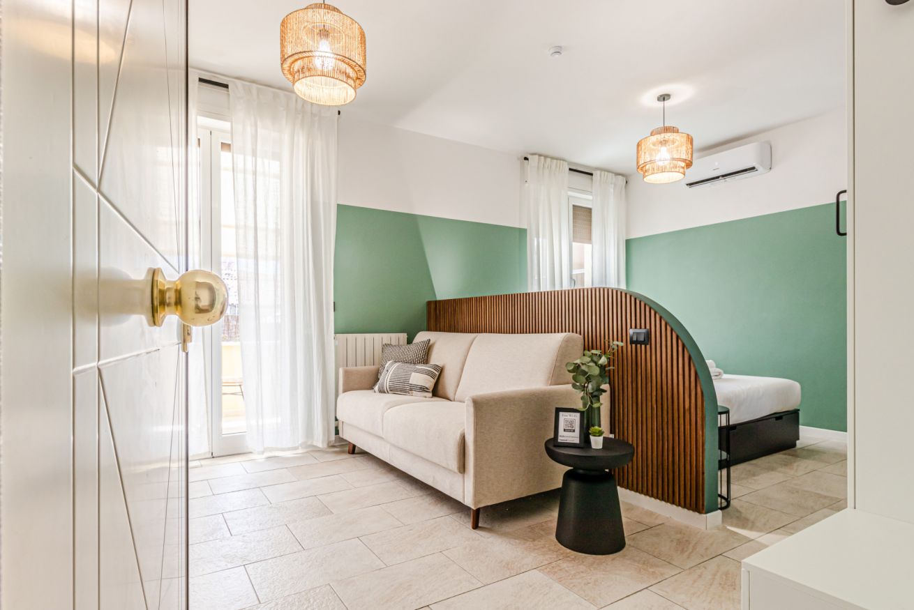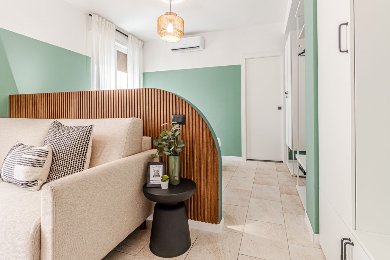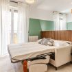 È indicato per chi viaggia per lavoro, per coppie o per famiglie con figli al seguito che possono sfruttare il comodo divano letto della zona giorno che comunque rimane comunicante con la camera matrimoniale.
