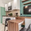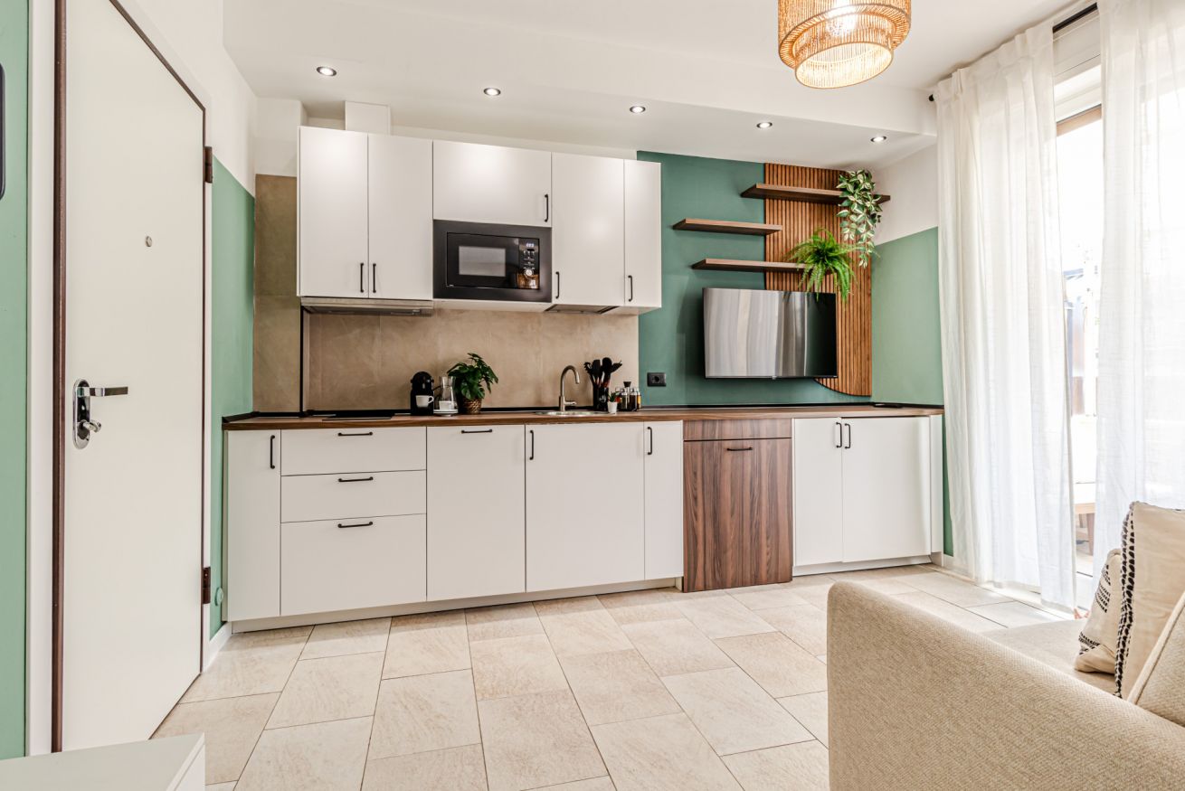 La cucina è lineare dotata di forno a microonde, lavastoviglie, frigorifero e piano cottura in ceramica a induzione dove potrai cucinare e divertirti allo stesso tempo.