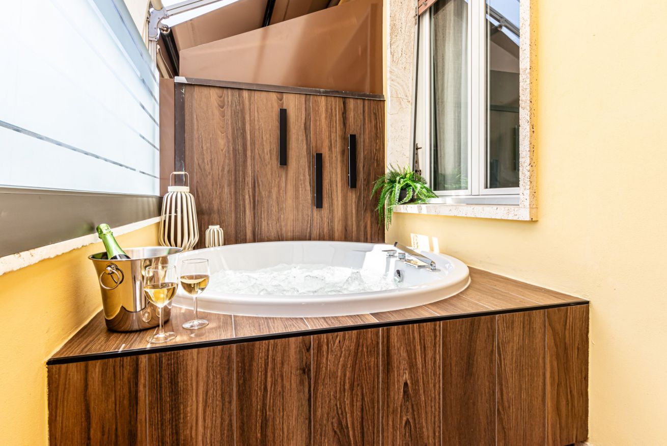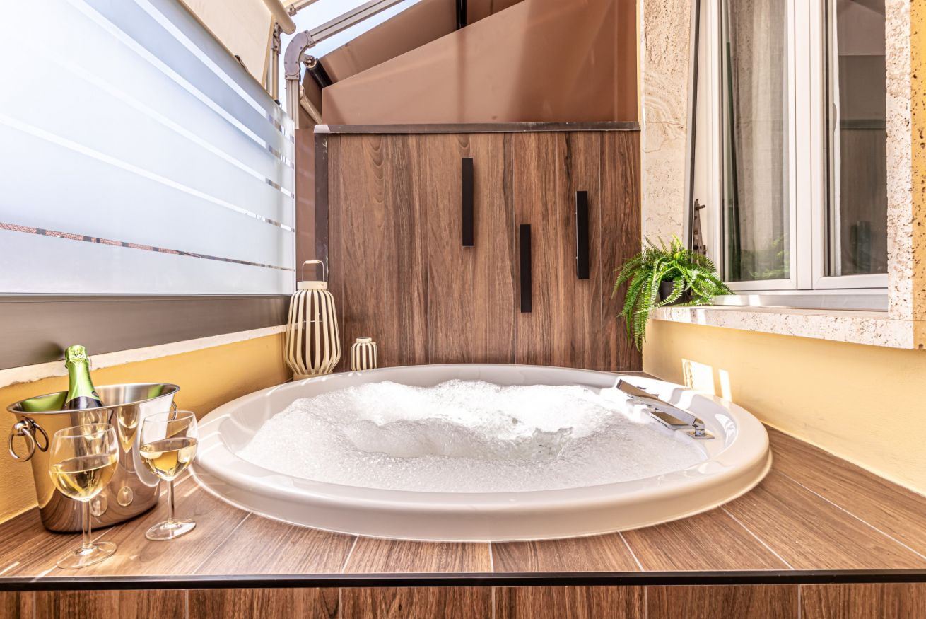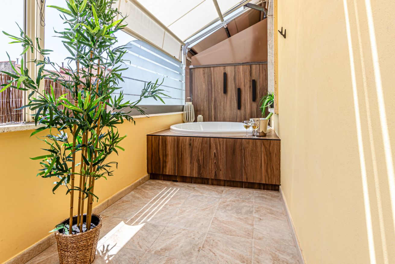 Completa la proprietà una zona relax posta sulla terrazza dell’appartamento ove è possibile trovare una splendida vasca idromassaggio.